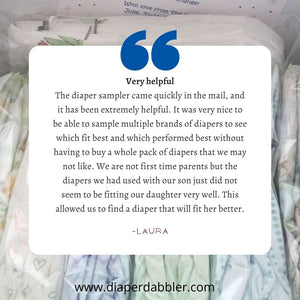 🎁 Most Diaper Sampler Packages can be wrapped as a gifts! Add your gift packaging at checkout (only available on Diaper Sampler Packages that include at least 6 Diaper Sample Packs)